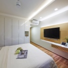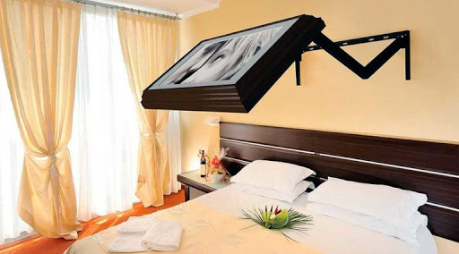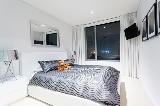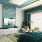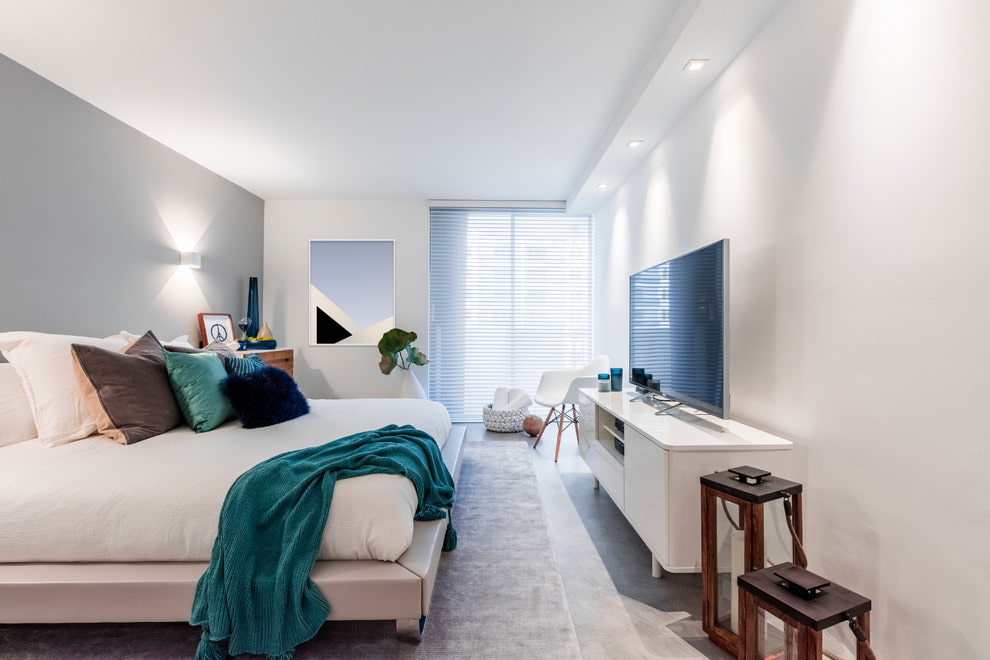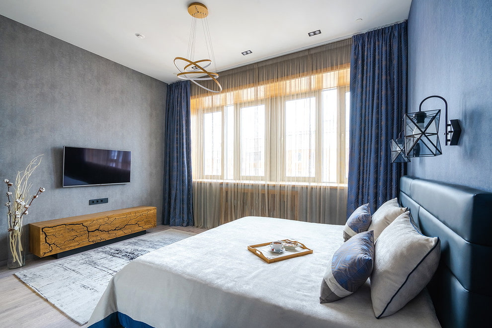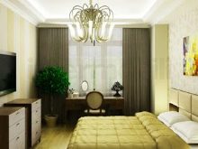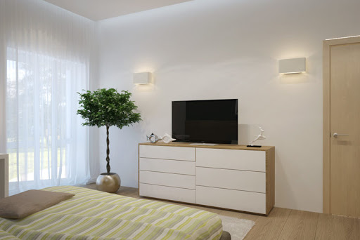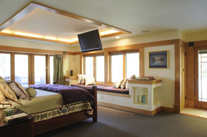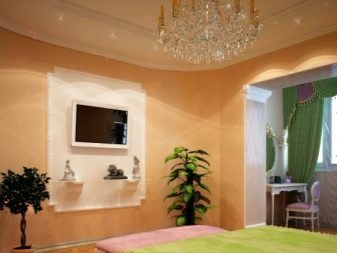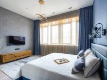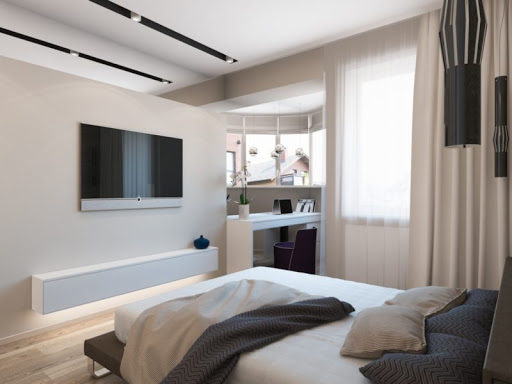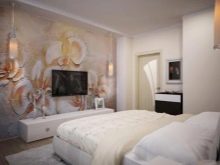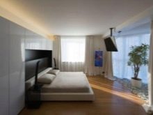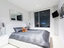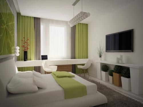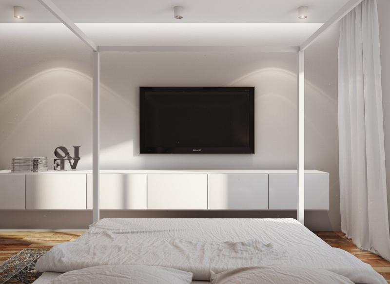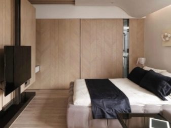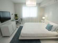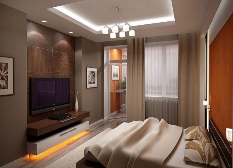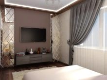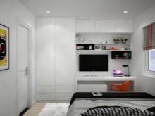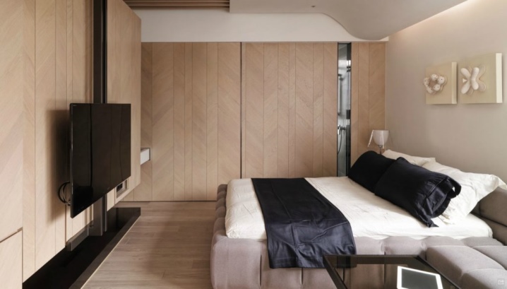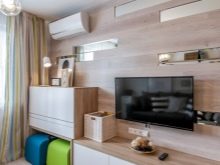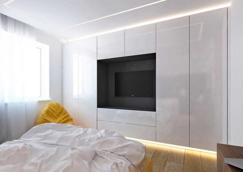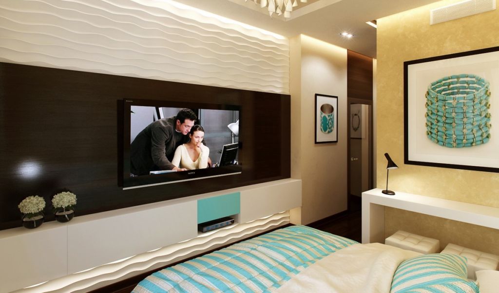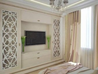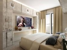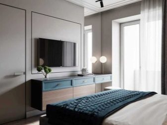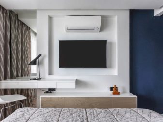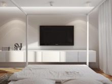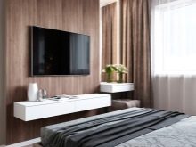 Το υπνοδωμάτιο σας επιτρέπει να εγκαταστήσετε διάφορα μικρά ράφια ή ακουστικά εδώ, τα οποία μαζί με την τηλεόραση θα δημιουργήσουν το τέλειο σύνολο.