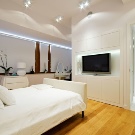 Εάν υπάρχει μια θέση στο υπνοδωμάτιο, τότε θα είναι το ιδανικό μέρος για τη θέση της τηλεοπτικής ζώνης. Πρέπει να σημειωθεί ότι εδώ είναι δύσκολο να επιλέξετε το σωστό μέρος για την εγκατάσταση μιας τηλεόρασης, λαμβάνοντας υπόψη τα χαρακτηριστικά σχεδιασμού της περιοχής, ωστόσο, με μια ικανή προσέγγιση, εγκαθιστώντας τον απαραίτητο εξοπλισμό φωτισμού και ήχου, αυτή η περιοχή θα γίνει πραγματική αντικείμενο τέχνης.