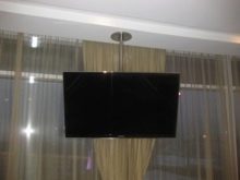 Συνήθως, η τηλεόραση βρίσκεται στην οροφή μόνο εάν οι τοίχοι δεν έχουν σχεδιαστεί για τέτοιο φορτίο. Παρά τις αρκετά λεπτές διαστάσεις των τηλεοράσεων, ζυγίζουν τουλάχιστον 10 κιλά και ορισμένοι τοίχοι δεν είναι σε θέση να αντιμετωπίσουν ένα τέτοιο φορτίο. Σε αυτή την περίπτωση, χρησιμοποιούνται ειδικές αγκύλες, οι οποίες επιτρέπουν την τοποθέτηση της συσκευής στην οροφή.