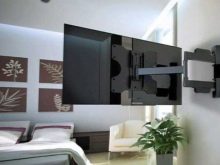 Η τοποθέτηση της τηλεόρασης σε έναν τοίχο παρέχει στον ιδιοκτήτη περισσότερες επιλογές τοποθέτησης, ειδικά σε ένα μικρό διαμέρισμα. Μπορείτε να τοποθετήσετε τη συσκευή σε μια συρταριέρα, να την ενσωματώσετε σε ένα ακουστικό ή να την κρεμάσετε μπροστά από το κρεβάτι. Κάθε μία από αυτές τις επιλογές είναι εξαιρετική για την τοποθεσία, αξίζει να επιλέξετε ορισμένες από αυτές, λαμβάνοντας υπόψη τις ιδιαιτερότητες της διάταξης, τον βαθμό φωτισμού του δωματίου και τις προσωπικές προτιμήσεις του ιδιοκτήτη.