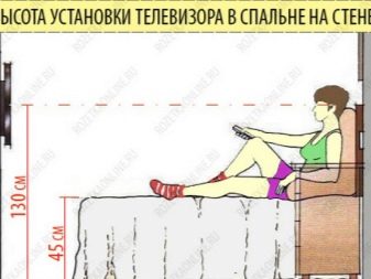 Όταν τοποθετείτε μια τηλεόραση σε έναν τοίχο σε ένα υπνοδωμάτιο, είναι απαραίτητο να υπολογίσετε σωστά το ύψος της θέσης. Εάν κάνετε λάθος και κρεμάσετε τη συσκευή πολύ ψηλά ή χαμηλά, τότε αυτό θα προκαλέσει ορισμένα προβλήματα κατά την παρακολούθηση αρχείων πολυμέσων και θα οδηγήσει επίσης σε μόνιμη βλαβερή θέση του σώματος, η οποία μπορεί να προκαλέσει διάφορες ασθένειες.