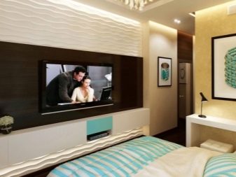 Εάν θέλετε να εγκαταστήσετε ένα τέτοιο στοιχείο στο εσωτερικό, τίθεται αμέσως το ερώτημα, υπάρχει ανάγκη για τηλεόραση και ποια πλεονεκτήματα μπορεί να προσφέρει. Η παρουσία αυτής της τεχνικής στο υπνοδωμάτιο δικαιολογείται τουλάχιστον για τον λόγο ότι αυτό το δωμάτιο χρησιμοποιείται για αναψυχή. Επομένως, η παρουσία μιας τηλεόρασης σάς επιτρέπει να παρακολουθείτε τι αρέσει στον ιδιοκτήτη χωρίς να παραβιάζετε τα όρια ενός άλλου ατόμου.