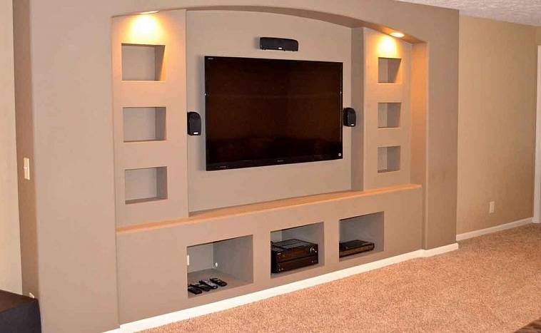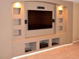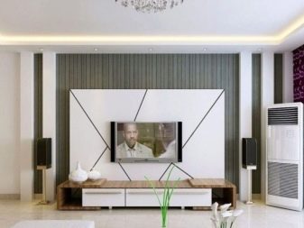 Πρόσφατα, τα διακοσμητικά πάνελ που κατασκευάζονται από γυψοσανίδα είναι δημοφιλή. Το κύριο πλεονέκτημα τέτοιων σχεδίων είναι ότι σας επιτρέπουν να εστιάσετε επιπλέον προσοχή σε μια δεδομένη περιοχή. Είναι καλύτερο να επιλέξετε πάνελ με ενεργή υφή ή ουδέτερο συνδυασμό χρωμάτων, τα οποία θα κάνουν οπτικά την τηλεόραση πιο κομψή. Ως υλικά για τη δημιουργία ενός πίνακα, μπορείτε να χρησιμοποιήσετε όχι μόνο γυψοσανίδα, αλλά και laminate, μάρμαρο και ακόμη και υφάσματα. Όλα εξαρτώνται από τη στιλιστική κατεύθυνση στην οποία είναι διακοσμημένο το εσωτερικό.