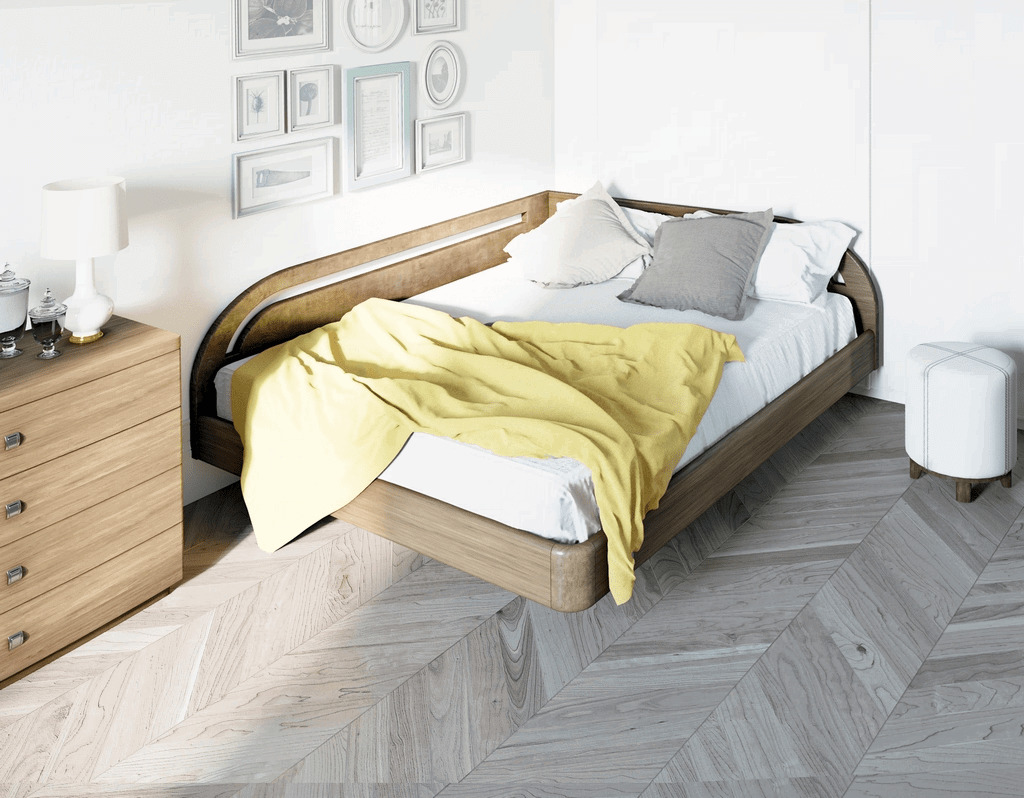 - Κρεβάτι από τη συλλογή Mati K. Διπλό κρεβάτι, από μασίφ ξύλο, καλυμμένο με καπλαμά από πάνω (δρυς, οξιά, ντεκό - κατά την επιλογή σας). Ασυνήθιστος σχεδιασμός του κρεβατιού: δεν υπάρχει κεφαλάρι και υποπόδιο. Διαθέτει μαλακές γωνίες, γεγονός που εξαλείφει την πιθανότητα τραυματισμού. Ωστόσο, αυτό το μοντέλο δεν συνοδεύεται από ορθοπεδικό στρώμα.