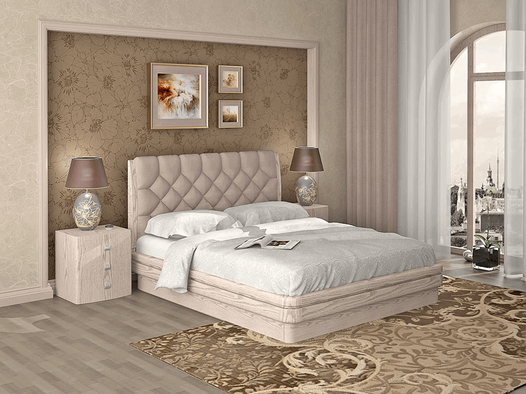 - Κρεβάτι από τη συλλογή "Atria"... Ένα άνετο μοντέλο από μια φθηνή σειρά με μασίφ ξύλο στο πίσω μέρος, διακοσμημένο με μαλακό οικολογικό δέρμα καπιτονέ ή ύφασμα ταπετσαρίας. Μπορείτε να παραγγείλετε μια απαλή ταπετσαρία πλάτης από γνήσιο δέρμα. Εξοπλισμένο με κουτί αποθήκευσης, το οποίο μπορεί να είναι κατασκευασμένο από πλαστικοποιημένη μοριοσανίδα ή πολυστρωματικό ξύλο. Το κουτί είναι αφαιρούμενο για εύκολο καθάρισμα. Ένα διαμέρισμα μπορεί να παραγγελθεί σε κουτί. Όταν παραγγέλνετε ένα μοντέλο χωρίς κουτί, μπορείτε να επιλέξετε διαφορετικούς τύπους υποστηρίξεων.