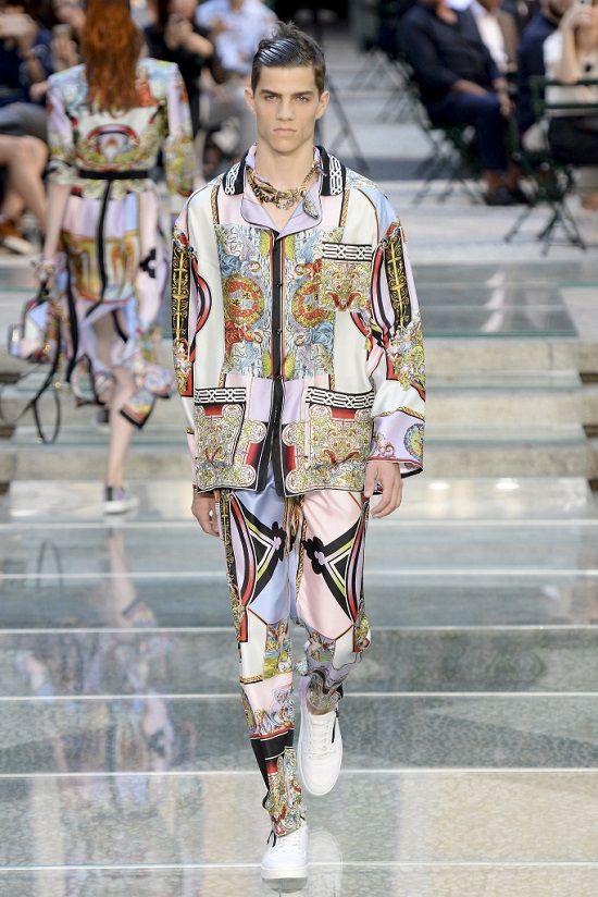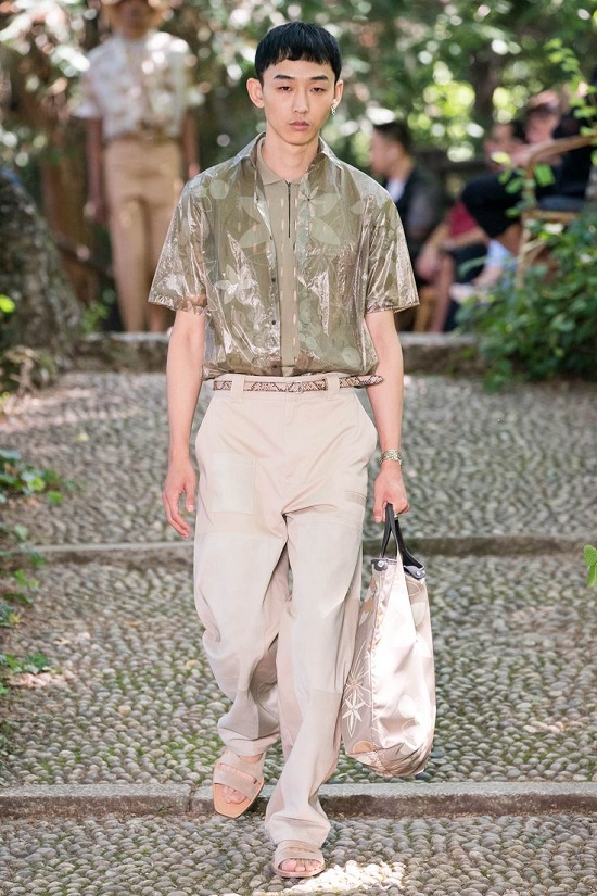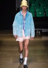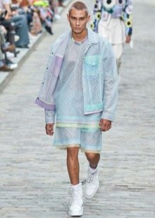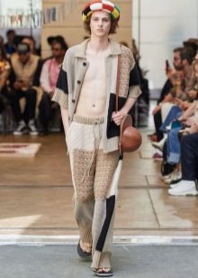 Ομαλά υφάσματα που ρέουν - σατέν, μετάξι, νάιλον επικρατούν σε μοντέλα καλοκαιρινών ανδρικών ενδυμάτων. Αυτά τα υλικά, ειδικότερα, έχουν χρησιμοποιηθεί από μάρκες Balmain, Dries Van Noten και Prada σε μοντέλα ανδρικών σορτς πολύ μικρού μήκους. Μοντέλα ανδρικών ενδυμάτων από ύφασμα με λαμπερή και ιριδίζουσα επιφάνεια έχουν επίσης δει τις συλλογές. Dior Men, Valentino, Salvatore Ferragamo.
