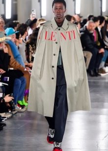 Ένα κομψό στοιχείο της εμφάνισης ενός άνδρα σε άσχημο καιρό θα είναι ένα ευρύχωρο σκηνή αδιάβροχο, κατασκευασμένο από γυαλιστερό αδιάβροχο ύφασμα.Στις προηγούμενες εκθέσεις, αυτό το λειτουργικό στοιχείο της ανδρικής ντουλάπας παρουσιάστηκε στις συλλογές Valentino, Louis Vuitton, Emporio Armani και Fendi.