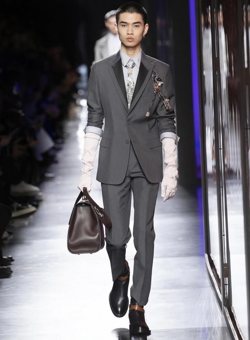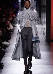 Ως πρωτότυπο παράδειγμα μιας κομψής ανδρικής εικόνας σε κλασικό στυλ, μπορείτε να δώσετε το σύνολο που παρουσιάστηκε στις τελευταίες επιδείξεις μόδας από τη μάρκα Dior Men. Ως βάση για αυτήν την εικόνα, οι σχεδιαστές του οίκου μόδας πήραν ένα κλασικό ανδρικό κοστούμι δύο τεμαχίων σε χρώμα γραφίτη, συμπληρώνοντάς το με ένα γκρι μαργαριτάρι πουκάμισο και γραβάτα με πρωτότυπο print.