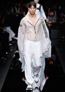 Θεαματικές καινοτομίες που έχουν μπει στην αντρική γκαρνταρόμπα είναι μπουφάν αντιανεμικών, ανοράκων και βομβαρδιστικώνκατασκευασμένα από διαφανή και ημιδιαφανή υλικά. Μοντέλα τέτοιων μπουφάν παρουσιάστηκαν το επόμενο έτος στις συλλογές Dior Men, Emporio Armani, Louis Vuitton, Off-White, Salvatore Ferragamo. Οι σχεδιαστές προτείνουν να τα συνδυάσετε με κλασσικά παντελόνια, κομμένα παντελόνια, παντελόνια.
