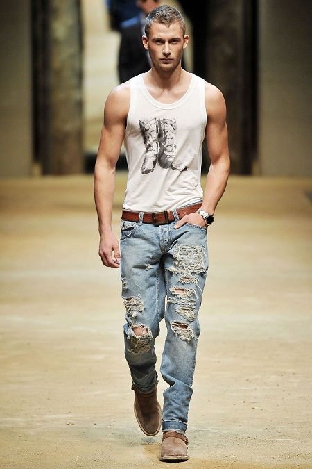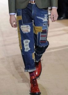 Στην κορυφή της δημοτικότητας παραμένουν φαρδιά τζιν με χαμηλή άνοδο και μοντέλα με πολύ χαλαρή εφαρμογή. Φέτος, οι σχεδιαστές συμβουλεύουν τους άντρες να προτιμούν τα τζιν διακοσμημένα με ψεύτικες τρύπες και αντίθετα μπαλώματα.