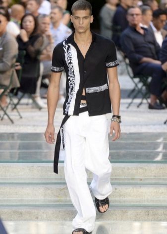 Επίσης, ξένοι σχεδιαστές μόδας έχουν βάλει μπροστά τα ανδρικά ρούχα. προκλητικά στυλ... Εξαιρετικά μικρό μήκος, υπερβολικές κοπές, διαφανή και πλέγματα υφάσματα, εξωτικές εκτυπώσεις - αυτές οι λεπτομέρειες των μοντέρνων ανδρικών ενδυμάτων θα εκτιμηθούν από τους οπαδούς του εξωφρενικού στυλ.