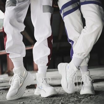 Ένας τόσο απλός και πρακτικός συνδυασμός πραγμάτων, όπως ένα κοντό μπουφάν και ένα παντελόνι με γυρίσματα, θα συμπληρώσει τέλεια τις λευκές κάλτσες και τα πάνινα παπούτσια του ίδιου χρώματος από πυκνό ύφασμα. Αυτή η επιλογή μπορεί να ερωτευτεί πολλούς νέους ανθρώπους που είναι πάντα σε κίνηση. Ο κύριος κανόνας είναι η σωστή σύνθεση του συνόλου, αλλιώς οι κάλτσες θα "λάμψουν"που θα φανεί γελοίο.