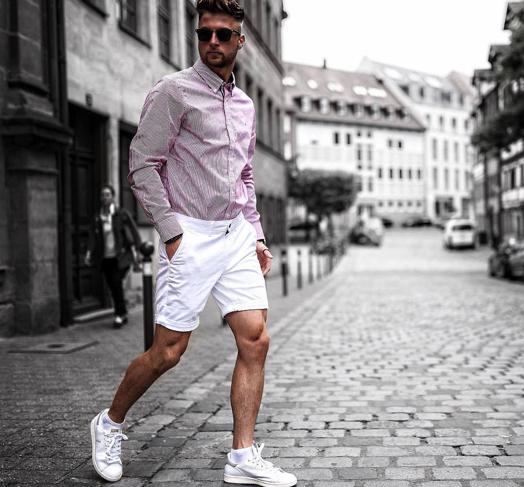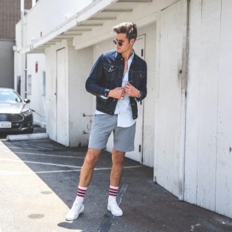 Ο κανόνας λέει ότι οι ανοιχτόχρωμες κάλτσες σε σπορ στυλ σε συνδυασμό με σορτς πρέπει να είναι κοντές, οι ψηλές δεν είναι κατάλληλες σε αυτή την περίπτωση. Αυτό θα σας βοηθήσει να δημιουργήσετε μια απλή και άνετη εμφάνιση για μια βόλτα ή μια συνάντηση με φίλους. Ένα ζευγάρι λευκά αθλητικά παπούτσια θα είναι ο ιδανικός σύντροφος για το σύνολο σας.