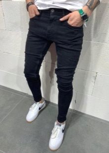 Τα μαύρα τζιν θυμίζουν κλασικά παντελόνια. Οποιοδήποτε υπόδημα είναι κατάλληλο για αυτούς - από loafers έως αθλητικά παπούτσια. Τα πιο επιτυχημένα είναι τα σκούρα χρώματα. Ανοιχτόχρωμα παπούτσια με μαύρο τζιν δείχνουν περίεργα.
