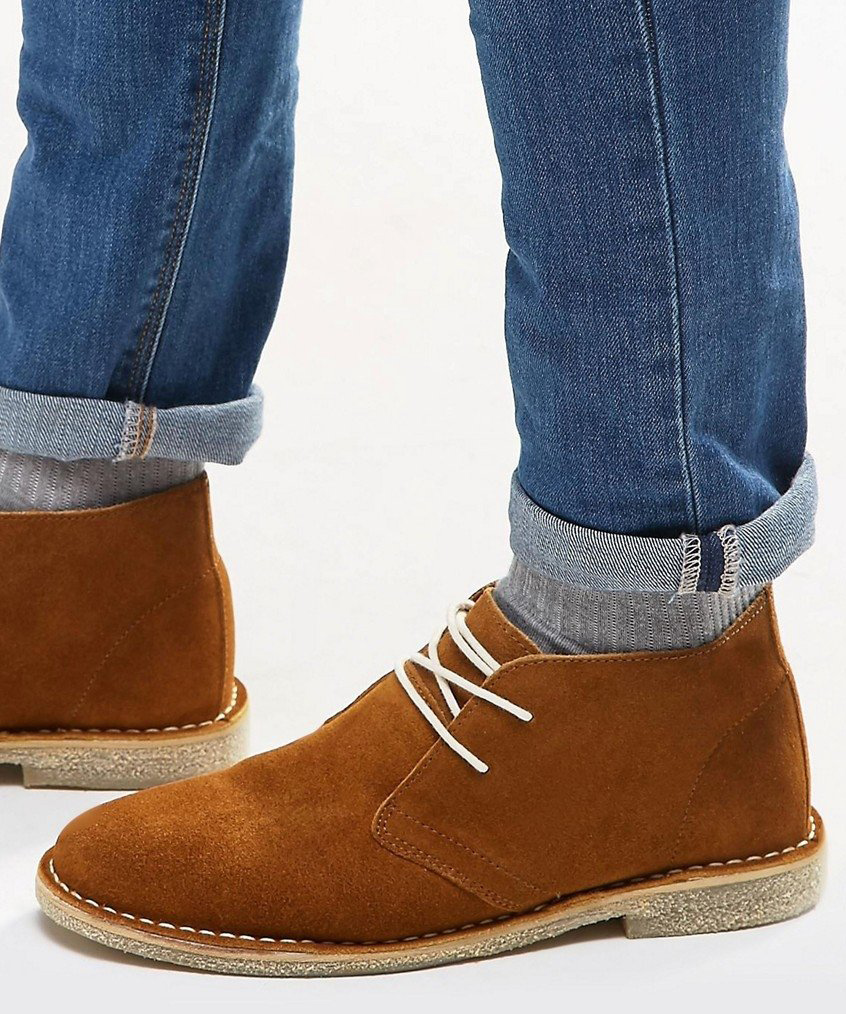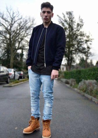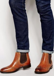 Ένα ζευγάρι σκούρο μπλε τζιν μπορεί να γίνει από chelsea ή suede deserts. Τέτοια παπούτσια είναι σε τέλεια αρμονία με το κλασικό στυλ και ταιριάζουν στην καθημερινή κατεύθυνση. Είναι καλύτερο να προτιμάτε τις ψηλές μπότες με τραχιά σόλα. Το χειμώνα, είναι σκόπιμο να φοράτε ανοιχτό καφέ ξύλο με τζιν.
