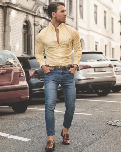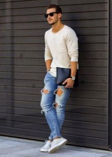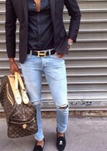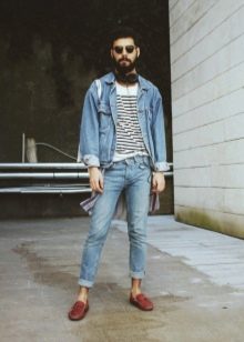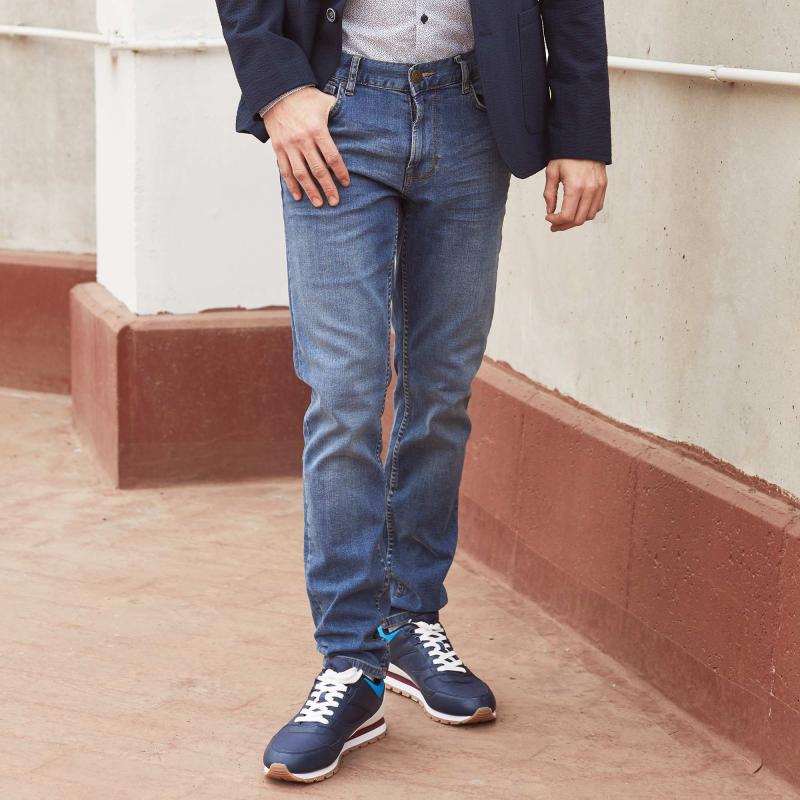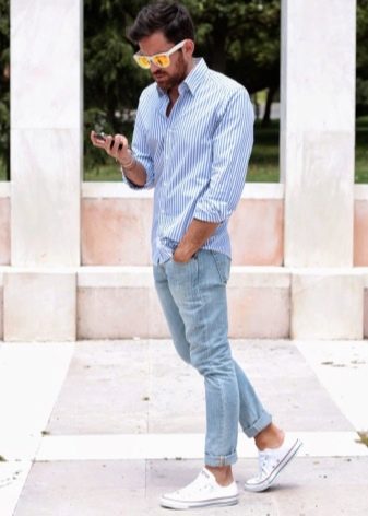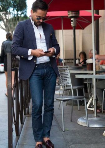 Ακόμα και με τα κανονικά μπλε τζιν, είναι εύκολο να δημιουργήσετε μια μεγάλη ποικιλία συνδυασμών. Φοριούνται με αθλητικά παπούτσια και μοκασίνια, σχηματίζουν στιλάτα φιόγκους με slip-ons και brogues. Το κύριο κριτήριο είναι η επιλογή του χρώματος του πουκαμίσου. Τα υφασμάτινα παπούτσια μπορούν να ταιριάζουν με το παντελόνι ή μπορείτε να προτιμήσετε ένα ζευγάρι τζιν παπούτσια.