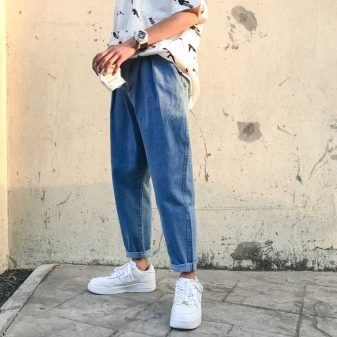 Με τζιν, οι φίλοι αρχικά αθλήθηκαν από γυναίκες, αλλά στη συνέχεια τέτοια μοντέλα ερωτεύτηκαν τους εκπροσώπους του ισχυρότερου φύλου. Παντελόνια φαρδιά στους γοφούς με ίσιο κόψιμο φοριούνται με slip-ons, sneakers και sneakers. Συνδυάζονται επίσης με brogues και αθλητικά παπούτσια.