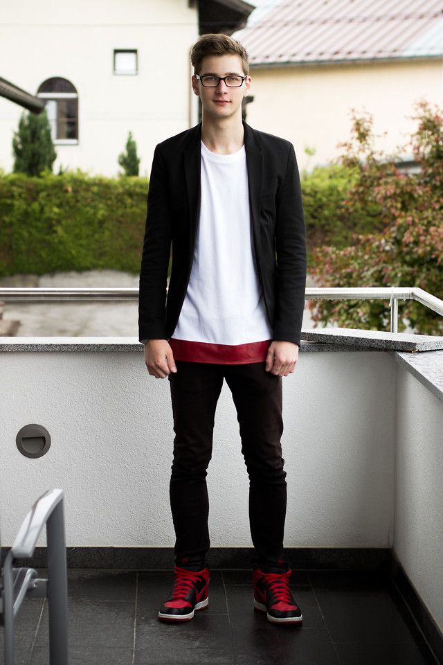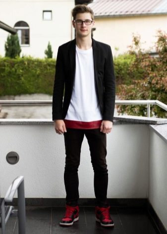 Αυτοπεποίθηση, τολμηροί άνδρες μπορούν να συμπληρώσουν την εμφάνιση με κόκκινα αθλητικά παπούτσια. Σε αυτή την περίπτωση, το τόξο πρέπει να περιλαμβάνει μια άλλη κόκκινη λεπτομέρεια, όπως ένα καπέλο μπέιζμπολ.