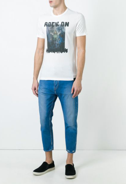 Εάν το χρώμα του ζευγαριού παπουτσιών ταιριάζει με το τζιν, τότε το πάνω μέρος πρέπει να είναι λευκό ή μαύρο - αυτό είναι απαραίτητο για να εξισορροπήσετε την παλέτα χρωμάτων.