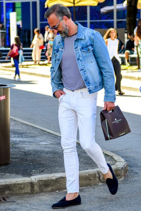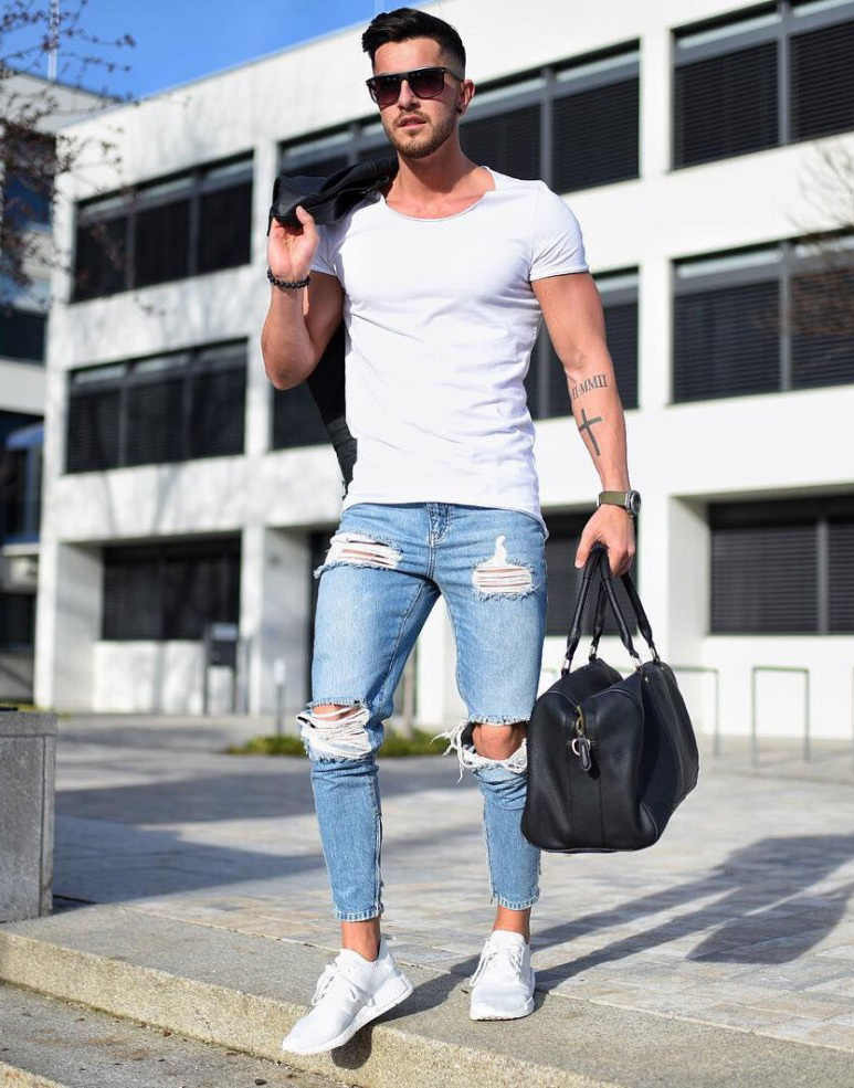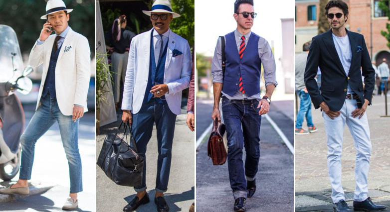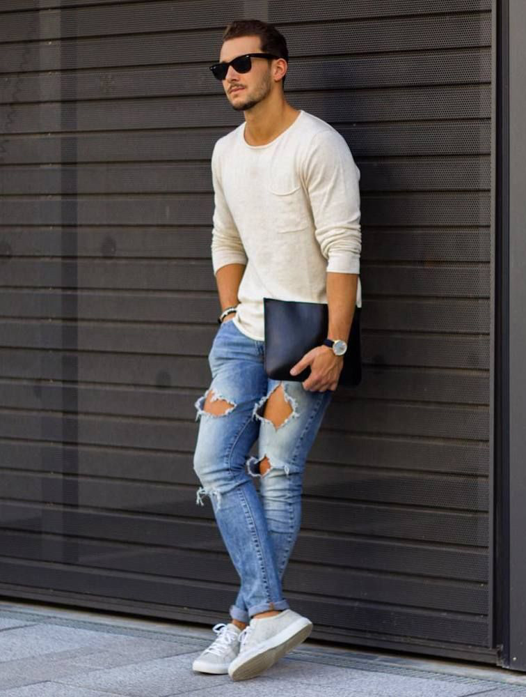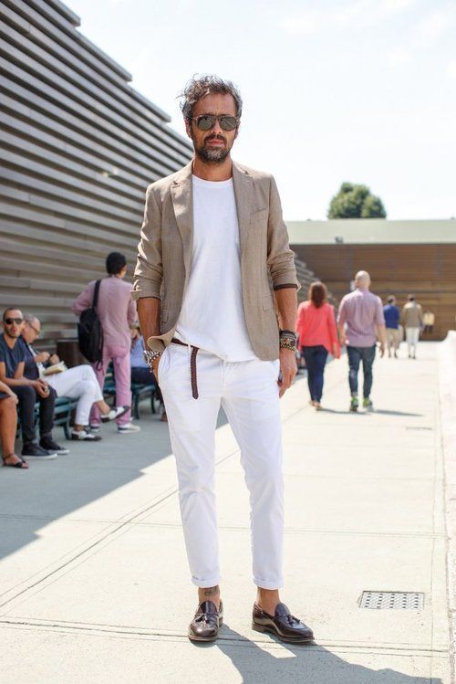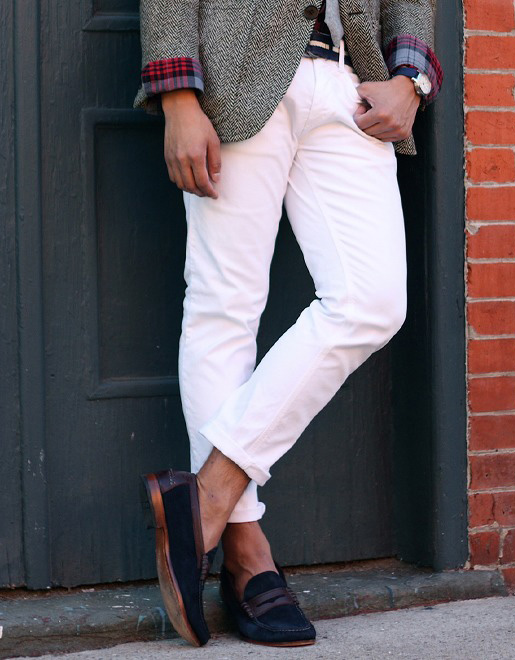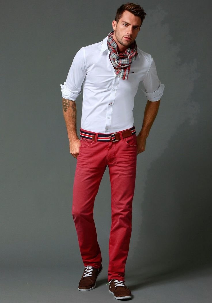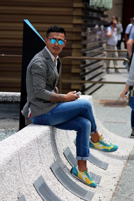 Τα λευκά και μαύρα πάνινα παπούτσια θα προσθέσουν μια πινελιά στυλ στην εμφάνισή σας. Όσοι αγαπούν πιο τολμηρές εμφανίσεις θα πρέπει να προτιμούν τις πιο φωτεινές αποχρώσεις. Δώστε ιδιαίτερη προσοχή στην επιλογή της κορυφής. Ένα πουκάμισο και ένα σακάκι με σπορ κόψιμο θα προσθέσουν λιτότητα στην εικόνα και ένα μπλουζάκι με σακάκι θα του δώσει επιμονή.