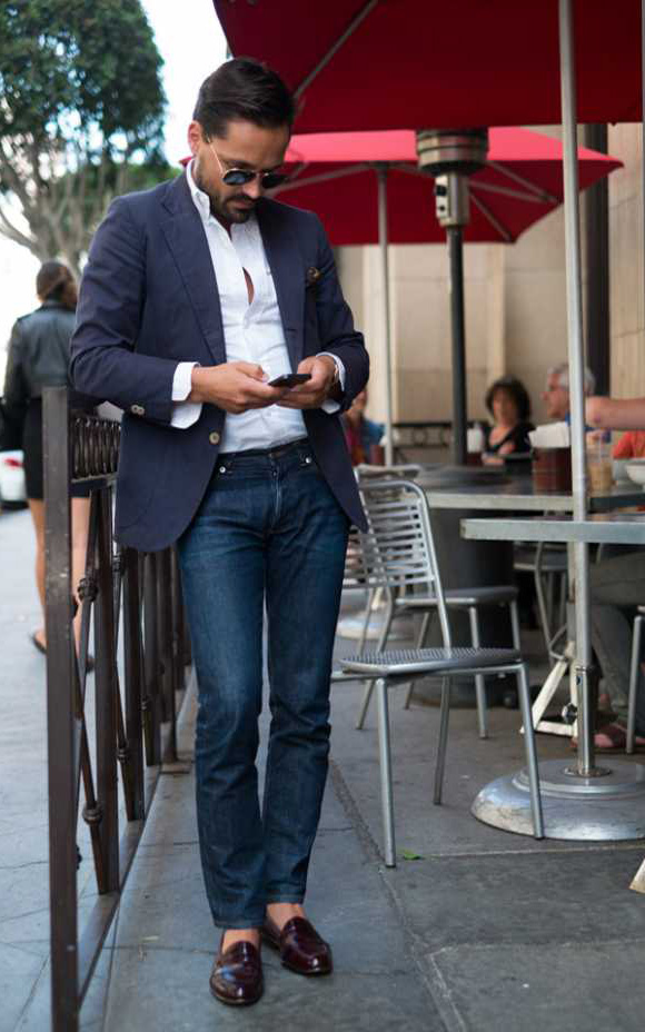 Όταν δημιουργείτε μια ημι-επίσημη εμφάνιση με τζιν, πρέπει να εργαστείτε προσεκτικά στις λεπτομέρειες. Μην ξεχνάτε ότι τα παπούτσια παίζουν σχεδόν καθοριστικό ρόλο στο σχηματισμό του τόξου. Δοκιμάστε ένα τζιν και ντέρμπι παπούτσια ή συνδυάστε τα με loafers. Για ένα ημι-επίσημο στυλ, αυτή είναι μια εξαιρετική λύση.