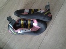 - Συνιστώνται άνετα παπούτσια αναρρίχησης για αρχάριους ορειβάτες. Είναι πιο κατάλληλο να τα χρησιμοποιήσετε σε τεχνητούς αναρριχητικούς τοίχους και μαλακά ορεινά τοπία. Κατά κανόνα, είναι εξοπλισμένα με κορδόνια για να τυλίγονται καλύτερα γύρω από το πόδι, λαμβάνοντας υπόψη τα χαρακτηριστικά του. Είναι σημαντικό το μέγεθος αυτών των παπουτσιών να ταιριάζει με το μέγεθος των ποδιών σας. Σε αυτά τα παπούτσια, ολόκληρο το πόδι δέχεται το φορτίο, αφού το άγχος κατανέμεται ομοιόμορφα. Το κάτω μέρος τέτοιων μοντέλων θα είναι μαλακό ή μεσαίο σκληρό. Από τα χαρακτηριστικά, πρέπει να σημειωθεί ότι δεν υπάρχει κάμψη και επίπεδο, επίπεδο ακρωτήρι.