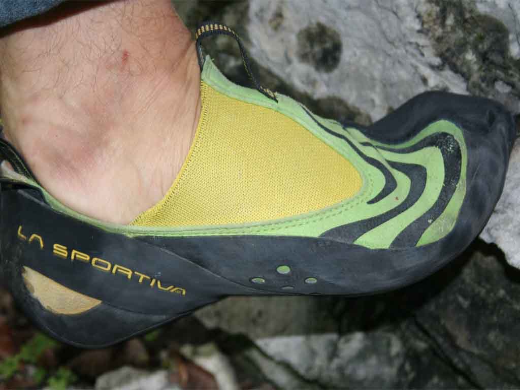 Τα παπούτσια αναρρίχησης χαρακτηρίζονται από ένα επιθετικό τελευταίο με ανατομικά χαρακτηριστικά. Μπορούν συχνά να πιέζουν έντονα το πόδι και να είναι μικρότερα από το μέγεθος του ποδιού. Τέτοια παπούτσια φοριούνται σε γυμνά πόδια, έτσι ώστε το κράτημα να είναι όσο το δυνατόν καλύτερο.