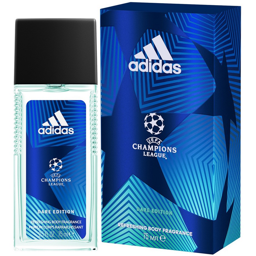 - Adidas UEFA champions league dare edition. Ένα νέο αλλά εξίσου δημοφιλές άρωμα, που αναπτύχθηκε το 2019. Ανήκει στην ομάδα των αρωματικών αρωμάτων, είναι λαμπερό, δροσιστικό, αναζωογονητικό και ενεργητικό. Η έκδοση Dare της Adidas UEFA champions league είναι σε θέση να μεταφέρει ένα πλήρες αγωνιστικό πνεύμα σε ένα άτομο, να ξυπνήσει τη θέληση για νίκη. Αυτό το ανδρικό άρωμα πρώτης κατηγορίας διαθέτει μια πρωτότυπη πυραμίδα με έντονες νότες. Έτσι, οι νότες κορυφής εδώ είναι μέντα, οι μεσαίες είναι γεράνι, κάρδαμο και λεβάντα και οι νότες βάσης είναι βετιβέρ και πατσουλί.