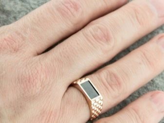 Ο ροζ χρυσός θεωρείται θηλυκό μέταλλο.Ως εκ τούτου, οι άνδρες αγοράζουν σπάνια σφραγίδες από ένα τόσο πολύτιμο μέταλλο.Έτσι, μπορείτε να επιλέξετε μια σφραγίδα από διάφορες παραλλαγές ενός πολύτιμου μετάλλου, όπως ο χρυσός. Επικεντρωθείτε στη γενική σας εικόνα, καθώς και στις ατομικές προτιμήσεις αισθητικής και γεύσης.