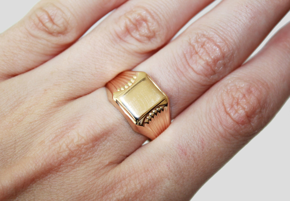 Αν μιλάμε για την ιστορία της εμφάνισης χρυσών αρσενικών φώκιας, τότε πρέπει να σημειωθεί ότι δεν δημιουργήθηκαν αρχικά ως κοσμήματα αισθητικής, ένα ως αξεσουάρ που προορίζονται για πρακτικούς σκοπούς. Έτσι, δημιουργήθηκαν δαχτυλίδια για άνδρες χωρίς πρόσθετα ένθετα και πέτρες, αντίθετα, υπήρχε ένα χαραγμένο μοτίβο στο κέντρο της σφραγίδας, με τη βοήθεια του οποίου δημιουργήθηκαν εντυπώσεις σε έγγραφα.