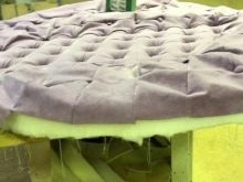 - Για να εξοπλίσετε το κάθισμα πάγκου, μπορείτε να χρησιμοποιήσετε μια "πίτα" από πολυεστέρα και αφρώδες ελαστικό. Η χρήση πολυεστέρα με επένδυση είναι προαιρετική, αλλά σε αυτή την περίπτωση, το προϊόν θα αποδειχθεί πιο άκαμπτο.