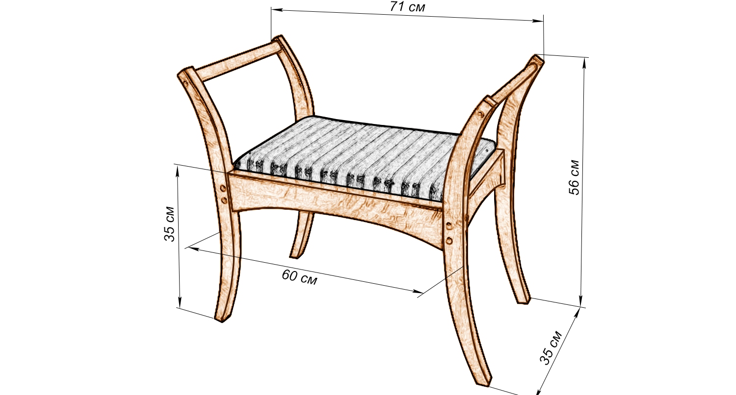 - Ανάλογα με τον αριθμό των καθισμάτων, υπολογίζονται οι κύριες παράμετροι του πάγκου, καθώς και οι διαστάσεις άλλων συστατικών στοιχείων. Όλες οι τιμές πρέπει να αντικατοπτρίζονται στα σχέδια.