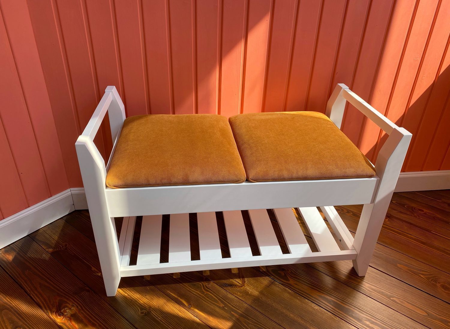 - Ο πάγκος μπορεί να βαφτεί σε οποιοδήποτε χρώμα σας αρέσει. Το κύριο πράγμα είναι ότι ταιριάζει αρμονικά στο εσωτερικό του διαδρόμου.