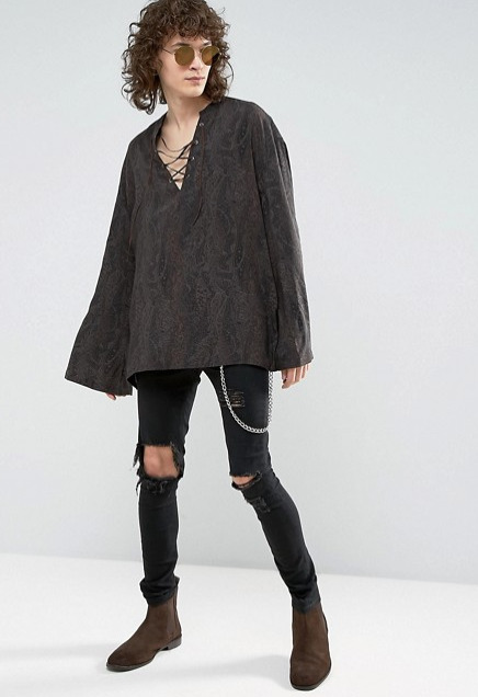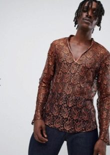 - Paisley ή «ανατολίτικα αγγούρια». Αυτό το μοτίβο, παρά την επιδεικτικότητα του, έχει μεγάλη ζήτηση μεταξύ των ανδρών που γνωρίζουν πολλά για τα ρούχα. Παρ 'όλη τη φωτεινότητά του, η εκτύπωση είναι αρκετά ευέλικτη. Μπορεί εύκολα να συνδυαστεί τόσο με τζιν όσο και με ένα κλασικό κοστούμι.