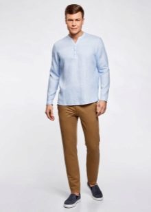Πουκάμισα με κολάρο stand-up ταιριάζουν υπέροχα με μπλουζάκι ή λινό ζακέτα. Εάν το μοντέλο είναι κατασκευασμένο σε κλασικό στιλ και σε μία από τις παραδοσιακές αποχρώσεις "πουκάμισων", είναι κατάλληλο για κάθε περίσταση.