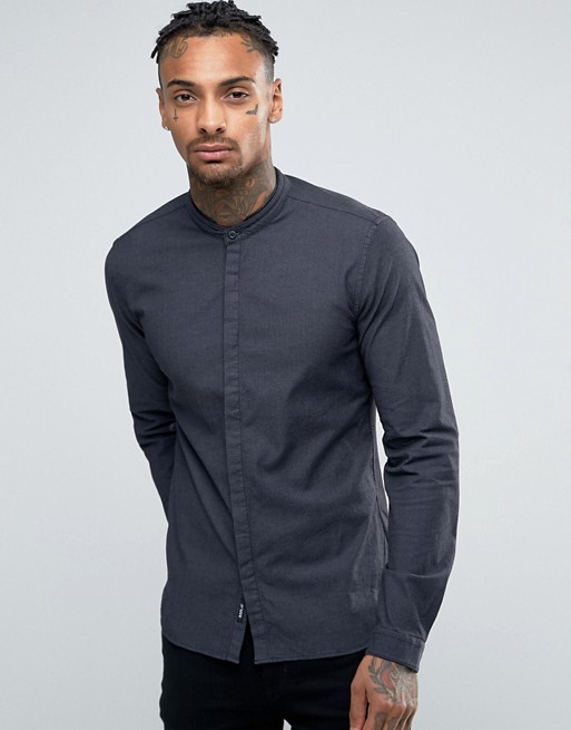 Φυσικά, ένα μοντέλο χωρίς κολάρο δεν θα φορά πλέον γραβάτα. Τέτοια πουκάμισα είτε έχουν λαιμόκοψη V, χωρίς να στερεώνονται στο πάνω μέρος, είτε τα κουμπιά πάνω τους πηγαίνουν μέχρι το λαιμό, μετατρέποντας σε ένα είδος κολάρου.