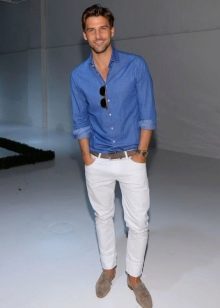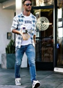 - Το πουκάμισο είναι τοποθετημένο μπροστά. Το πίσω μέρος του στρίφωμα δεν είναι καθόλου στριμωγμένο. Αυτή η μέθοδος μπορεί να φαίνεται κομψή τόσο με επίσημα παντελόνια όσο και με τζιν. Ωστόσο, είναι επίσης πολύ μακριά από το άμεσα δυνατό να το νιώσουμε. Αυτή η μέθοδος απαιτεί μια πολύ κριτική εκτίμηση πριν εμφανιστεί σε μια τέτοια εικόνα μπροστά στο κοινό, και πάλι για να μην προκαλέσει υποψία προχειρότητας. Το πουκάμισο πρέπει να είναι αυστηρά σε μέγεθος, συμπεριλαμβανομένης της περιοχής της μέσης.