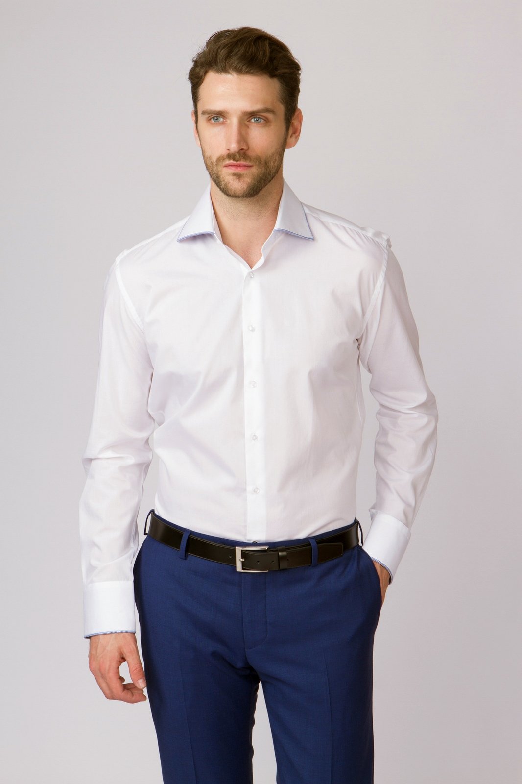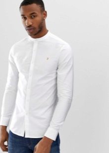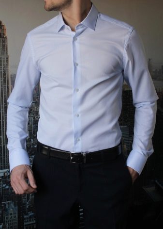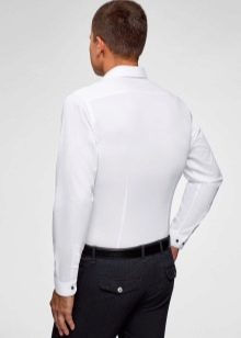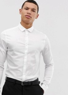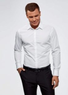 - Ασπρο χρώμα. Ένα λευκό πουκάμισο με μακριά μανίκια πρέπει να υπάρχει στην ντουλάπα κάθε άντρα. Είναι συνηθισμένο να φοράτε ένα τέτοιο πουκάμισο κάτω από ένα σακάκι. Εάν επιλέξετε ένα εφαρμοστό πουκάμισο για κοστούμι, τότε θα πρέπει να είναι μόνο σε κλασικό στιλ.