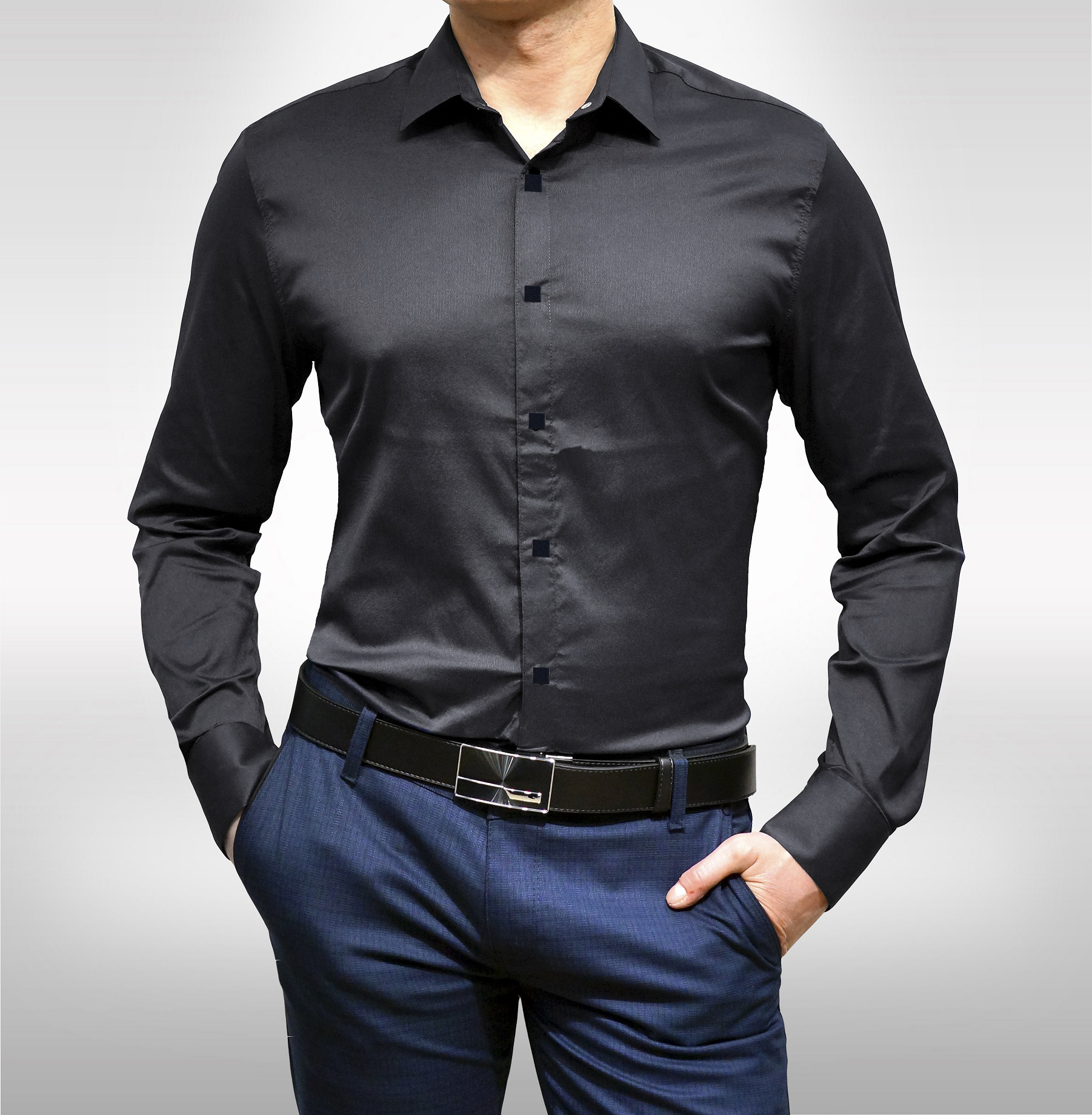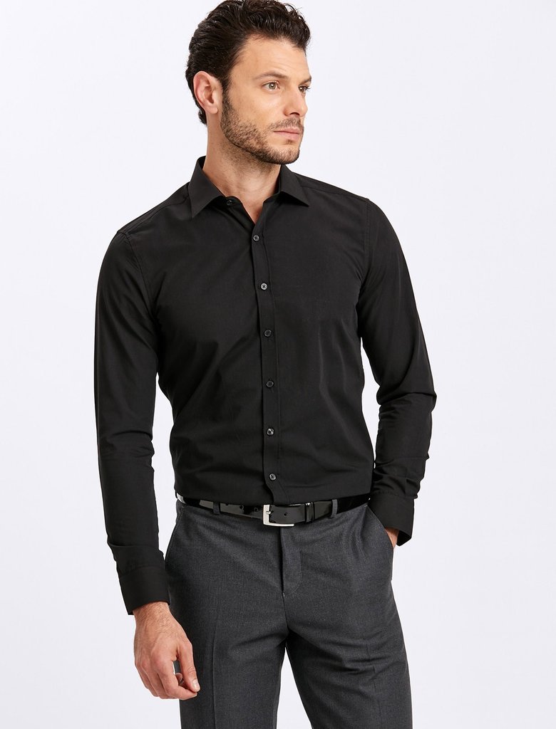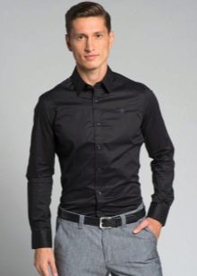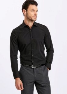 - Μαύρο χρώμα. Σε αντίθεση με το λευκό, το μαύρο, αντίθετα, κρύβει ατέλειες. Αυτό παίζει στα χέρια εκείνων που αμφιβάλλουν για το ιδεώδες της φιγούρας τους, για παράδειγμα, εάν υπάρχει ένα ζευγάρι (και μόνο ένα ζευγάρι) επιπλέον κιλά ή, ίσως, η μέση δεν είναι αρκετά στενή. Σε αυτή την περίπτωση, ένα στενό μαύρο πουκάμισο θα κρύψει μικρά ελαττώματα στο σχήμα.