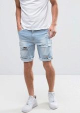 - Μοντέλα τζιν. Σήμερα κάθε άντρας έχει τουλάχιστον ένα κομμάτι τζιν στην ντουλάπα του. Τα τζιν σορτς δεν έχουν σχεδιαστεί για ζεστό καιρό, επομένως χρησιμοποιούνται συνήθως όταν κάνει πολύ κρύο για να φορέσετε κινό.