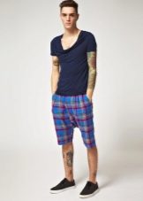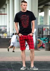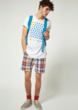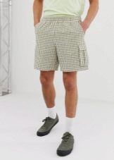 - Με σχέδια. Αυτό περιλαμβάνει όλα τα μονόχρωμα σορτς με μεμονωμένα μοτίβα, ρίγες, σχέδια, εφαρμογές και μπαλώματα. Σε στυλ παραλίας, τα σορτς με εικόνες φοίνικες θα φαίνονται υπέροχα. Για περπάτημα στην πόλη, θα πρέπει να είναι κατάλληλα καρό σορτς ή ριγέ μοντέλα.