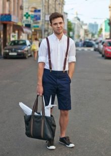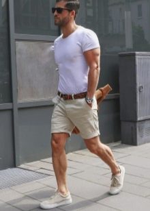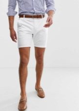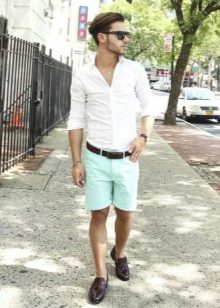- Λευκό. Το λευκό είναι μια εξαιρετική επιλογή για νέους, ενεργητικούς και με αυτοπεποίθηση. Αυτό το χρώμα αναζωογονεί, καθιστά τα στοιχεία του ρούχου πιο εκφραστικά και δημιουργεί μια ευχάριστη αντίθεση. Το λευκό σορτς ταιριάζει καλύτερα με πουκάμισα πόλο και πουκάμισα σε παστέλ χρώμα. Το λευκό έχει επίσης τα μειονεκτήματά του - αυτό το χρώμα χρειάζεται ιδιαίτερη φροντίδα και μπορεί να γεμίσει οπτικά τη φιγούρα ενός άντρα.