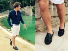 - Παπούτσια. Η επιλογή ενός τόσο σημαντικού στοιχείου ρούχων όπως τα παπούτσια εξαρτάται σε μεγάλο βαθμό από το συνολικό στυλ της εικόνας.Σε απλό ή σπορ στυλ, τα συνηθισμένα πάνινα παπούτσια, πάνινα παπούτσια, παντόφλες ή από πάνω θα φαίνονται καλύτερα με σορτς. Εάν επιλέγετε παπούτσια για την παραλία, τότε είναι προτιμότερο να επιλέξετε σανδάλια ή μοκασίνια. Τα Loafers είναι μια πιο σοβαρή επιλογή για ένα αυστηρό τόξο.