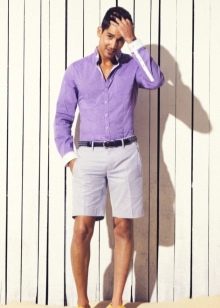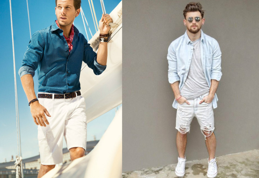 - Πουκάμισα - μια εξαιρετική επιλογή για casual τόξα, όπως το casual. Τα τζιν σορτς θα είναι σε τέλεια αρμονία με μοντέλα δημιουργικού και πρωτότυπου σχεδιασμού. Τα καρό πουκάμισα ταρτάν ή τα μοντέλα chambray φαίνονται επίσης καλά σε casual εμφανίσεις. Αν φοράτε σκούρα σορτς, είναι προτιμότερο να επιλέξετε τζιν ή λευκά πουκάμισα. Εάν έχετε σορτς με μπλε ή γαλάζιο χρώμα, δοκιμάστε ένα πουκάμισο από λάιμ, μέντα ή λιλά. Τα λουλουδάτα πουκάμισα είναι ιδανικά για πάρτι στην παραλία. Εάν δεν θέλετε να διακινδυνεύσετε τη συμβατότητα χρωμάτων, μπορείτε να επιλέξετε μονόχρωμες επιλογές ρούχων.