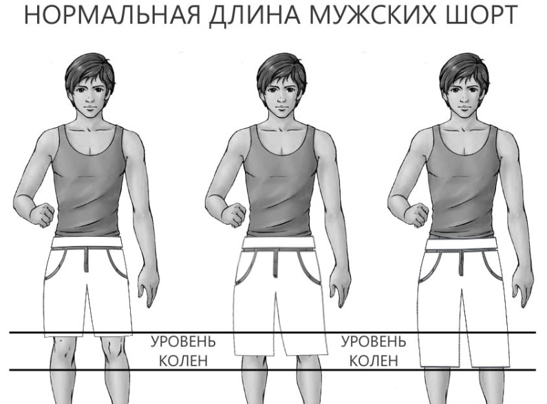 Οπως αναφέρθηκε προηγουμένως, τα καλά προσαρμοσμένα σορτς δεν πρέπει να φτάνουν στο γόνατο κατά 5-7 cm.
