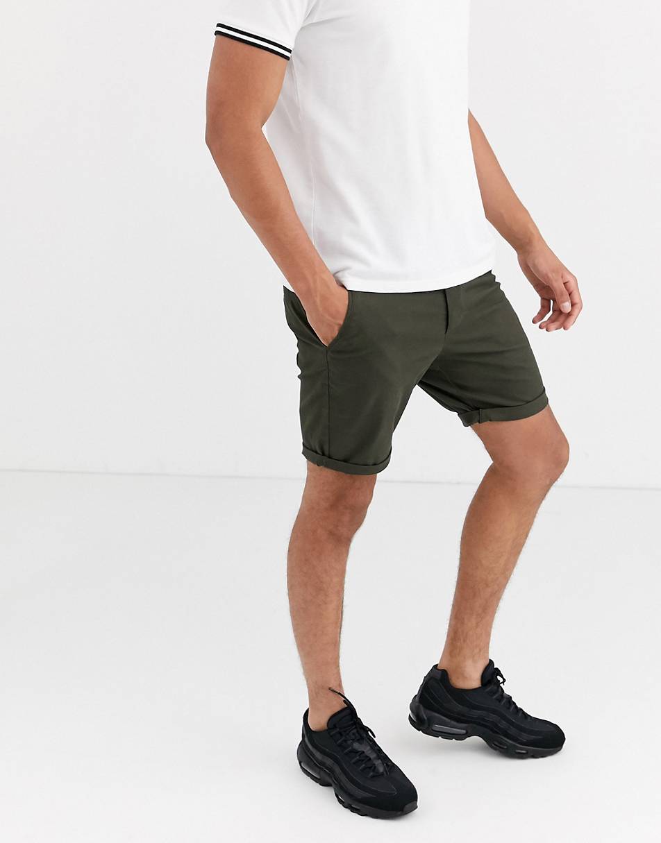 - Chinos. Αυτά τα μοντέλα μπορεί να μην δημιουργούν ένα κομψό και πλούσιο τόξο, αλλά θα φαίνονται αρμονικά και κομψά με οποιοδήποτε ρούχο. Αυτά είναι ευέλικτα σορτς που μπορούν να χρησιμοποιηθούν σε κάθε κατάσταση ζωής.