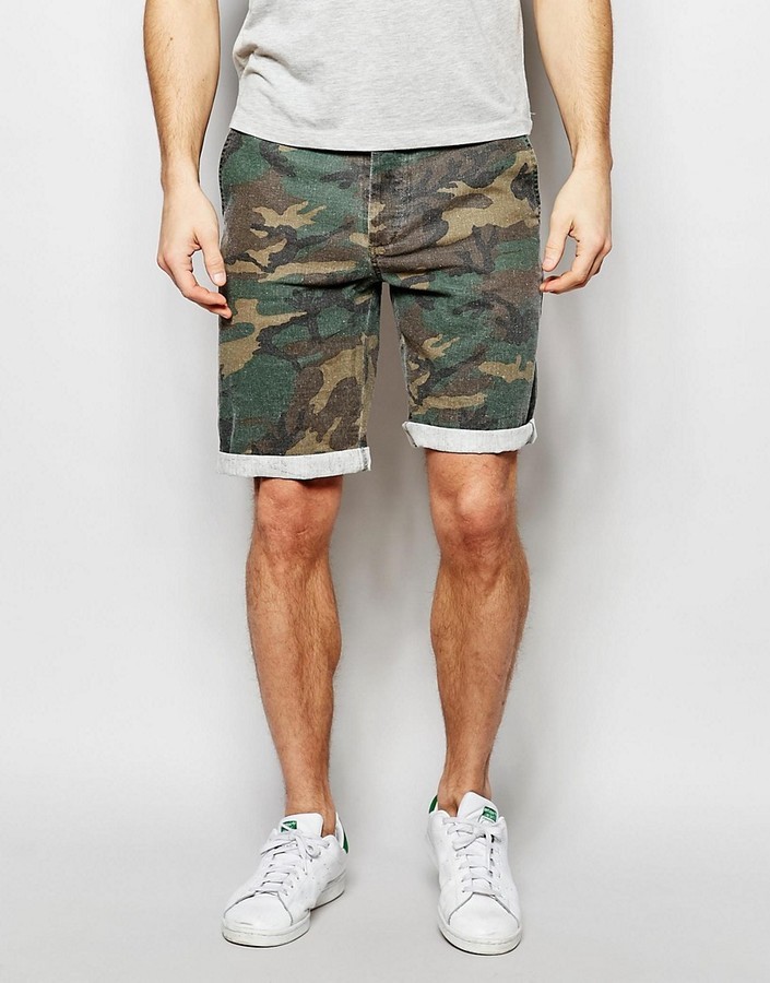 - Στρατός - Μια εξαιρετικά δημοφιλής ποικιλία σορτς καμουφλάζ. Αρχικά, χρησιμοποιήθηκαν αποκλειστικά από τον στρατό. Στο κατάλληλο στυλ, το οποίο πρέπει απαραίτητα να περιλαμβάνει ειδικά αξεσουάρ, εξωτερικά ρούχα και παπούτσια, αυτή η ποικιλία μπορεί να φαίνεται πολύ κομψή.