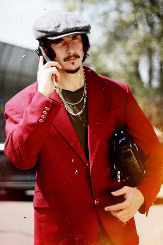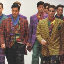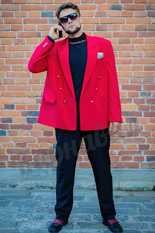 Ένα σαφές παράδειγμα του στυλ του "Big Man". Η φωτογραφία δείχνει τα κύρια σημάδια της εικόνας: ένα κατακόκκινο σακάκι, ένας μεγάλος χρυσός στόχος, τεράστια κοσμήματα από πολύτιμο υλικό. Σε αντίθεση με τις τάσεις που επέστρεψαν σταδιακά στη μόδα, αυτό το στυλ παρέμεινε στη δεκαετία του '90.