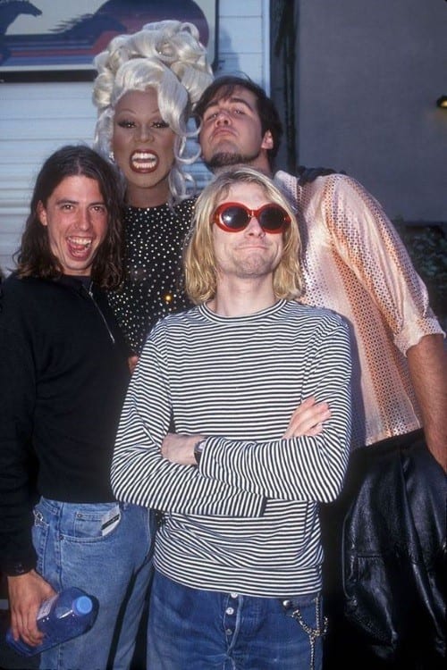 Η φωτογραφία δείχνει τον ιδρυτή του grunge style Kurt Cobain. Η σολίστ με μακριά ξανθά μαλλιά φορά μπλε τζιν και μακρυμάνικο ριγέ μπλουζάκι. Η εικόνα συμπληρώνεται με γυαλιά με κόκκινα πλαίσια και μαύρους φακούς.