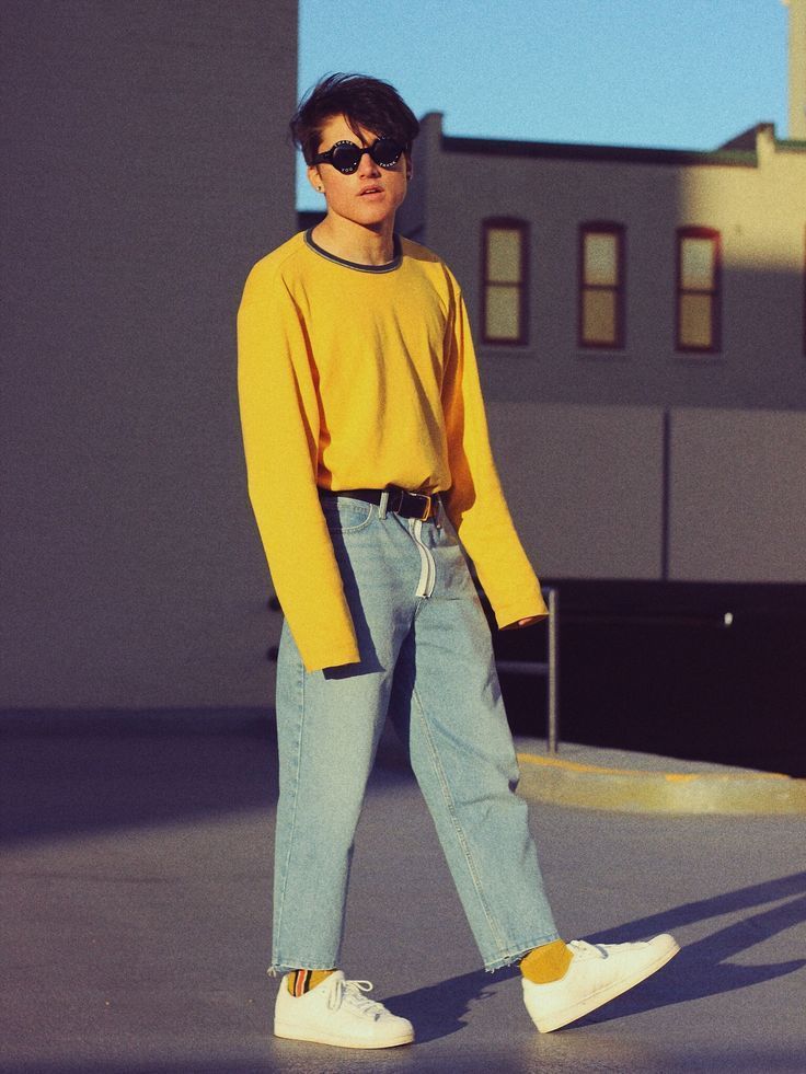 Στρώματα, άμορφα, φαρδιά ρούχα. Πρέπει να σημειωθεί ότι ακόμη και σήμερα αυτό το στυλ θα φαίνεται κατάλληλο και σχετικό. Μια άλλη επιλογή unisex.
